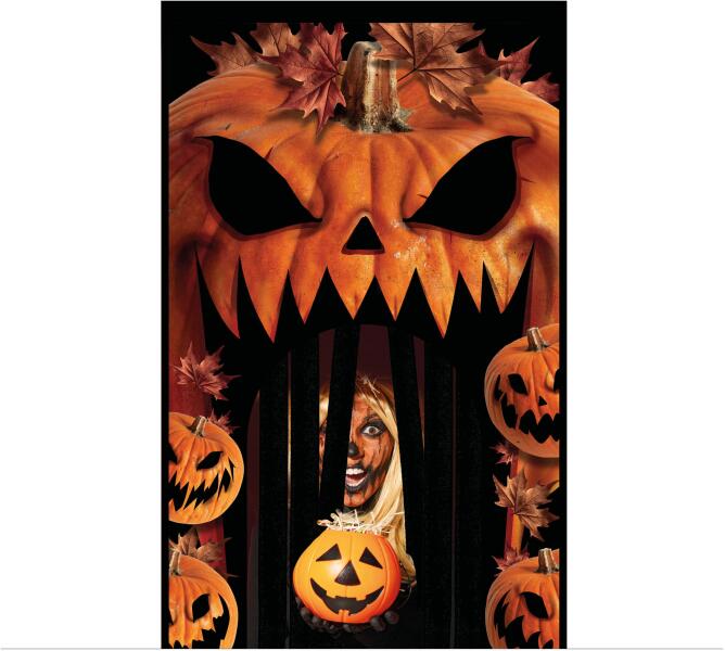 Ajtó dekoráció - Halloween tök Kísérteties Halloween partit tervez? Teremtsen felejthetetlen Halloween hangulatot különféle kísérteties dekorációkkal , mint például ez a Halloween tök motívumú ajtó dekoráció . anyag : poliészter méret : 145 x 240 cm