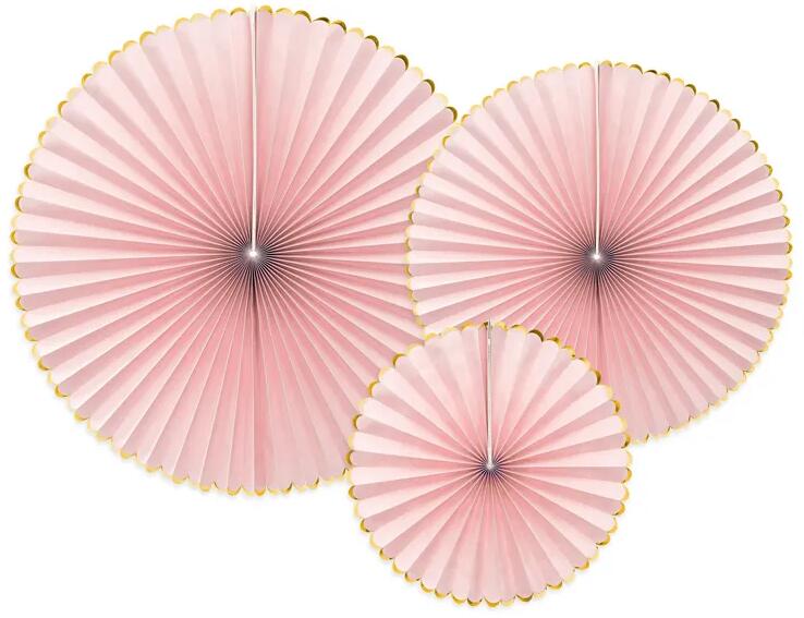 Dekorációs rozetták - világos rózsaszín Tervezze meg a partit vagy esküvői díszítést a tökéletességig! Dekorációs rozetták pasztell színekben mindenkit lenyűgöznek. darab: 3 drb anyag: papír szín: világos rózsaszín, arany méretek: kb . 40 cm, 32 cm, 23 cm