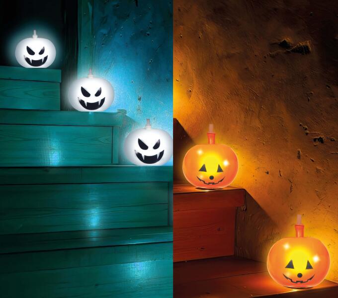A halloween egyik elengedhetetlen tarkozéka a töklámpás. Népszerű hagyomány a tököt kivágva, mókás, vagy ijesztő lámpásokat készíteni. Egyszerűbb alternatívája ez a LED-es töklámpás, mely különböző színekben világít. Többszínű LED-es töklámpás - 4 féle mintával A töklámpás mintája véletlenszerű, a 4 minta közül bármelyik kerülhet a csomagba. Anyaga: