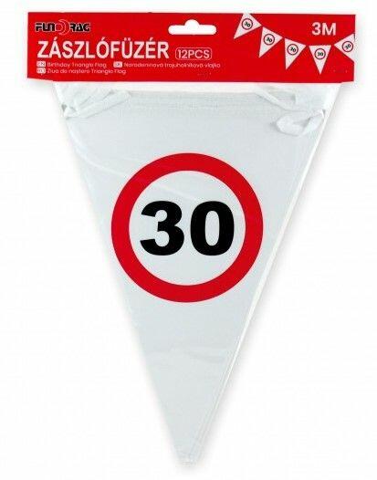 Zászlófüzér 30. évszámos 12db zászló 3m 640222 Befoglaló méretek 23x0.5x35 cmAnyaga papír
