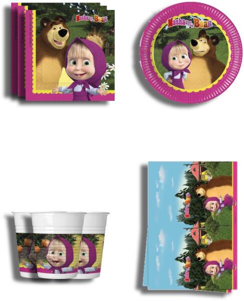 Születésnapi készlet Mása és a Medve 8 főre vegyes A Mása és a Medve motívumú party készlet mindent tartalmaz, amire szüksége van egy tökéletes születésnapi ünnepséghez. A Mása és a Medve készletben további remek party kellékeket talál, amelyek segítenek a születésnapi ünnepség díszítésében . A szett tartalmaz: Tányérok - Mása és a Medve 8 db Szalvéták - M