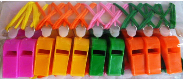 Bírói síp, műanyag, nyakba akasztós, több színben.