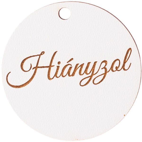 A "Hiányzol" feliratú fa korong érzelmes és megható kiegészítő, amely méltóságteljesen fejezi ki a szeretetet és emlékezést. 5999093331212
