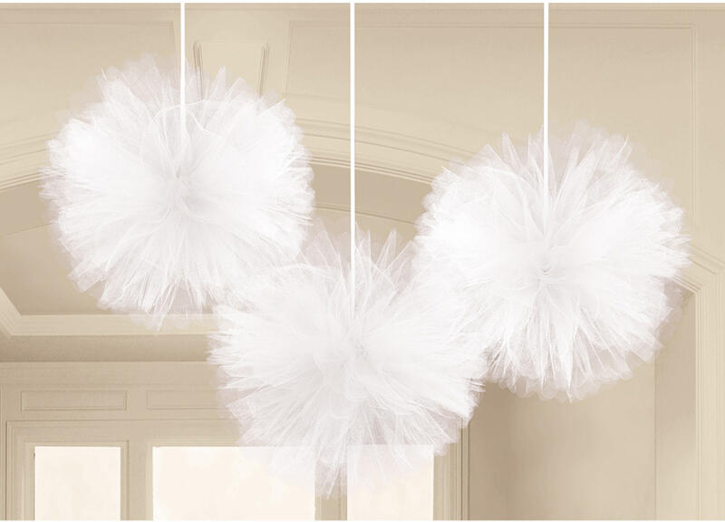 Nagy fehér tüll pomponok mennyiség: 3 db méretek: 30,4 cm Gyengéd, romantikus dekorációs kellék az Ön esküvőére.