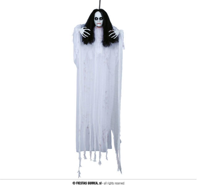 Függő dekoráció - Női szellem 120 cm Kísérteties Halloween partit tervez? Teremtsen felejthetetlen hangulatot különféle kísérteties dekorációkkal . Ez a női szellem függő dekoráció nagyszerű parti kiegészítő minden Halloween dekorációhoz és az ünnep minden szerelmesének. mennyiség: 1 db méret: 120 cm tartalmaz: hang és fényhatás anyag: PVC, poliészter, fém