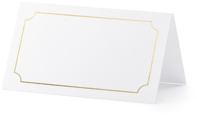 Fehér papír, arany fém kerettel, mérete összeállítás után kb. 9,5 x 5,5 cm. (1 db / 10 db. )