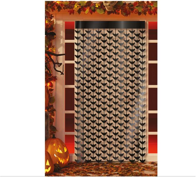 Ajtó dekoráció - függöny, Denevérek Kísérteties Halloween partit tervez? Teremtsen felejthetetlen Halloween hangulatot különféle kísérteties dekorációkkal . Ez a denevér motívumú ajtó dekoráció nagyszerű parti kiegészítő minden Halloween dekoráció rajongó számára. mennyiség: 1 db méret: 100 x 200 cm anyag: PVC