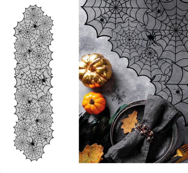 Asztali futó - Pókháló 45 x 183 cm Színesítse az asztalát ezzel a pókháló témájú asztali futóval ! Tökéletes Halloween vagy tematikus bulikhoz . Ez az asztali futó kísérteties és titokzatos megjelenést kölcsönöz a belső térnek, amely minden vendéget lenyűgöz. mennyiség: 1 db méret: 45 x 183 cm szín: feke te