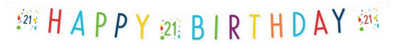 Confetti, Konfettis Happy Birthday 21 felirat 180 cm Mérete: 180x13,8 cm Anyaga: papír