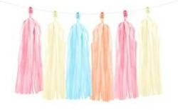 Nagyszerű dekoráció! A csomag 3 db krém, 3 db rózsaszín, 3 db barack, és 3 db kék színű rojtos dekorációt tartalmaz, vagyis a csomagban összesen 12 db rojtos dekoráció található. A füzért neked kell összeszerelni, így kedved szerint méretezheted, és váltogathatód a rojtos dek Méret: a csomagban található fehér madzag 2 méter hosszú. A rojt dekoráció 30 cm hosszú.