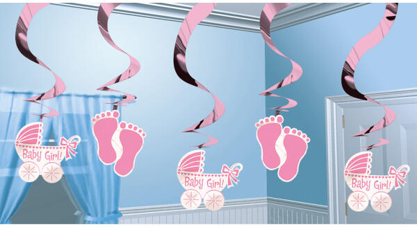 Dekorációs örvények - Baby Shower (rózsaszín) Dobja fel a Baby Shower ünnepséget ezzel a függő dekorációval rózsaszín színben, amely biztosan örömöt szerez mindenkinek. darab : 5 drb méret : 61 cm