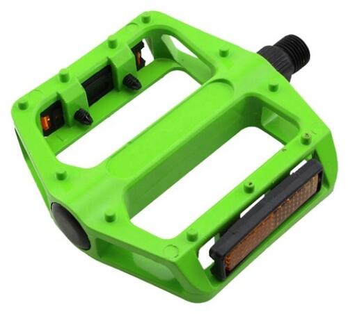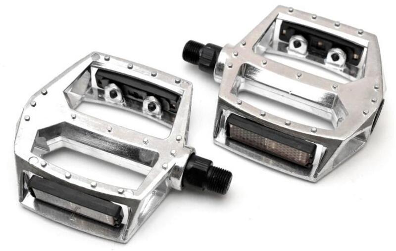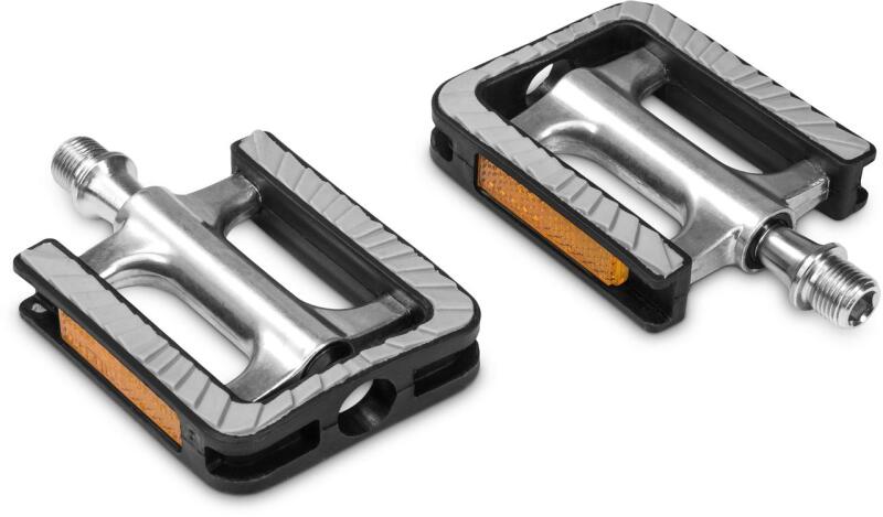 City bicycle pedals, made of aluminum and plastic, with an anti-slip finish to ensure a good shoe grip. Integrated reflective elements improve the user's visibility on the road. 85 x 73mm