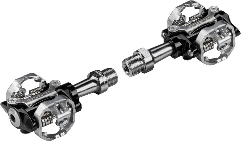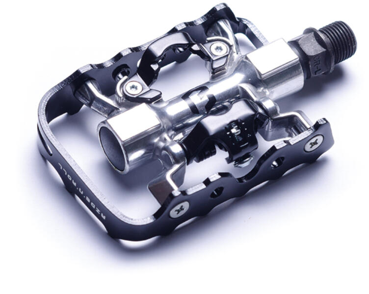 Tulajdonságok 9/16 Cr-Mo tengely. Golyós csapágyazás. Kétoldalas pedál, SPD és taposó. Alu test, ezüst. Alu keret, fekete. SPD stoplival együtt. Tömeg: 372g Kiszerelés: pár Stopliszabvány: 2 csavaros Pedálmenet: 9/16" Csapágyazás: kónuszos csapágyazás Pedáltest anyaga: alumínium