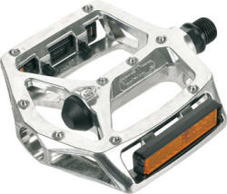 Egyrészes alumínium pedál Tengely: Boron 9/16" DU Polymer csapágyazás Méret: 114.3×82×26 mm Szín: ezüst