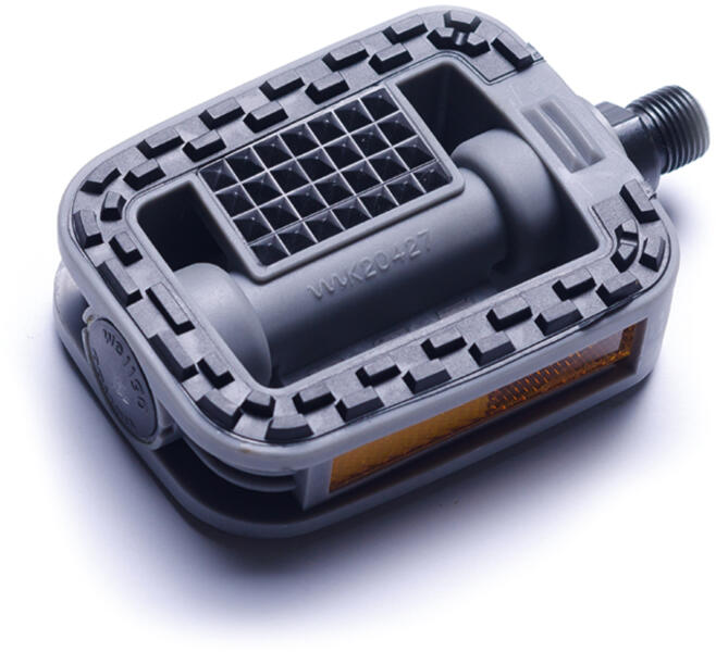 Kis méretű pedál. Műanyag pedáltest. 1/2 menettel. Golyós csapággyal, prizmával. Súly: 295 g/pár.