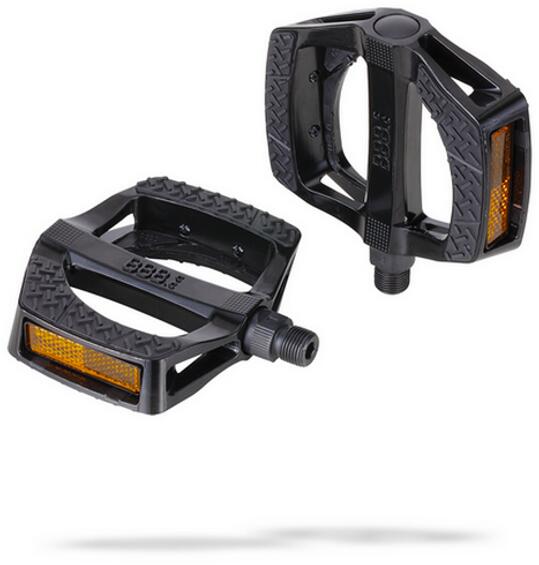 Ergonómikus alakú nagy platform pedál. Tartós acél test gumi, csúszásgátló felülettel. Dupla fényvisszaverő csíkok az extra láthatóságért rossz fényviszonyok között is. Karbantartásmentes DU csapágyak. Alkalmas e-bike használathoz.