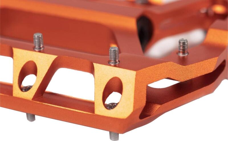 NAGYFELÜLETŰ, ALACSONY PROFILÚ, NYC PLATFORM PEDÁL, IPARI CSAPÁGYAZZÁSSAL, CROMO TENGELLYEL ÉS CSERÉLHETŐ SZEGECSEKKEL. MÉRETE: 98X105MM, SÚLY: 360G