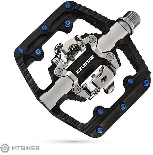 Exustar PM823 láb/platform pedálok A biztonságosabb terepen való közlekedés érdekében szerezze be az Exustar E-PM823 alacsony profilú MTB pedálokat alumínium platformmal, csúszásgátló eloxált csapokkal.