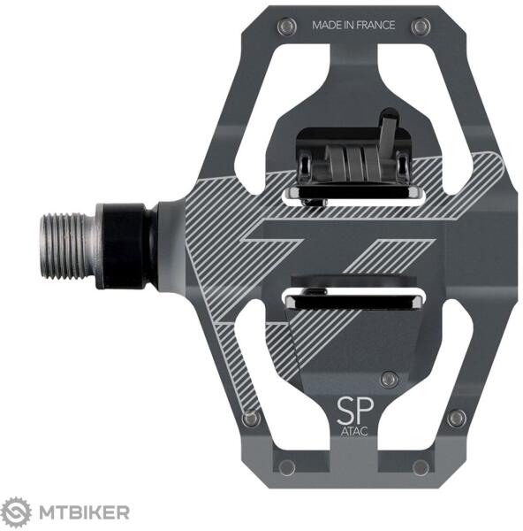 Enduro pedálok TIME Speciale 12 ATAC tokkal együtt, sötétszürke (TIME cikkszám: T2GV006) Platform : KÜLÖNLEGES Szín : Szürke Tengely anyaga : Túlméretezett üreges acél tengely Csapágyak : acél Test anyaga : 6106 T6 - Alumínium Bőröndök : ATAC stopli Pedál magasság : 19 mm Oldalsó hézag : 5 mm Kapcsolási szög : 10° ATAC Easy stoplival, 13 vagy 17° ATAC stoplival Feszess