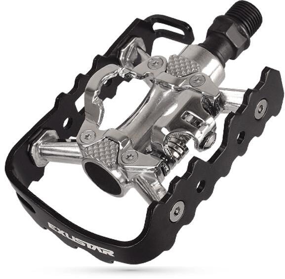 Triple-interface Pedals Versatile pedal featuring a triple-interface: 1. a clip-in binding on one side for cleated shoes, and on the other, 2. a simple platform for casual shoe use, 3. or add a toe clip and cage to the platform for increased pedaling efficiency. Equipped with an aluminum body and cage, and Cr-Mo axle.