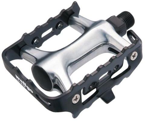 Nagy szilárdságú CrMo tengelyes mtb kerékpár pedál. A pedál minkét oldalán található fogazott felület biztosan tartja a cipőt még nedves körülmények között is. Dupla prizmák a biztonság érdekében. Kompatibilis a BPD-30 pedálklipsz szíjjal. Nagy szilárdságú, hidegen kovácsolt alumínium test és ház a tartósságért és a minimális súlyért.