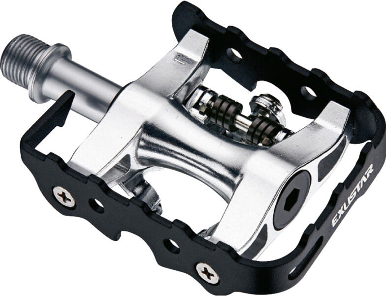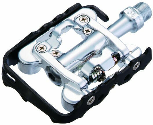 Féloldali SPD/platform pedál. Alumínium pedál, Cr-Mo tengellyel szerelve. Típus: alu városi pedál Ipari csapágyas Tengely: Heat-treated Cr-Mo. Csapágy: golyós csapágy Stopli: E-C05F Méret: 100 x 66 mm Súly: 350 g/pr