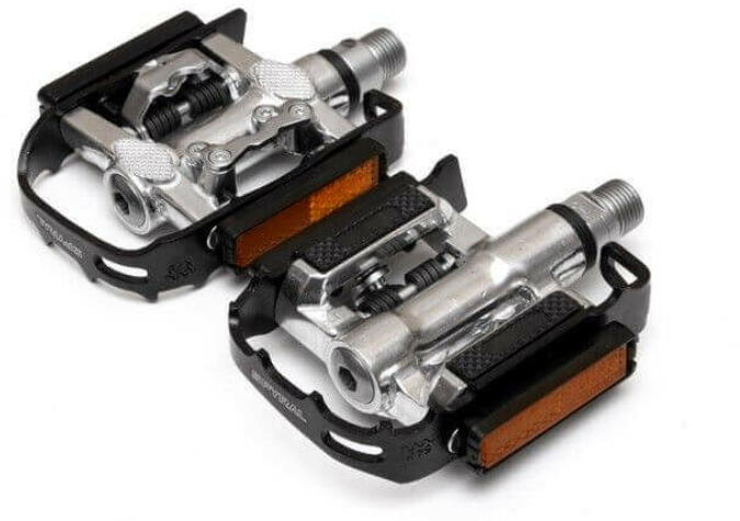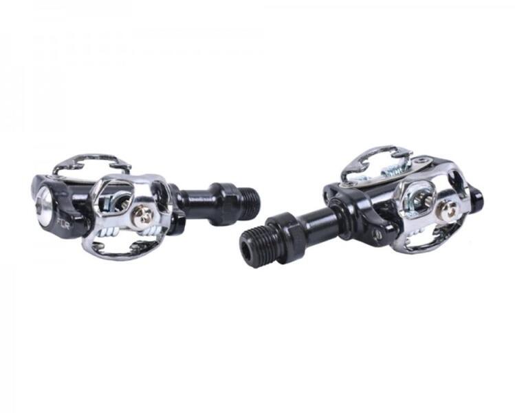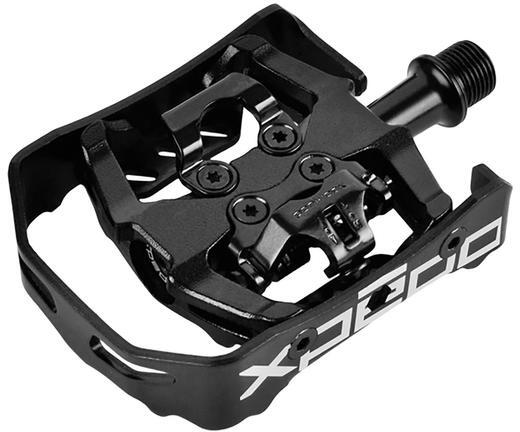 Spyral Broker New kombinált (keretes és SPD patent) pedál, fekete Minőségi, kombinált pedál. Egyik oldala taposó, míg a másik SPD rendszerű Kivitel: kecses és stabil, öntött alu test, szimmetrikus alu keret Cr-mo tengely - kónusz-golyó-csésze csapágyazás Extra tömítés a tengely belső felénél Egyik oldalon Shimano kompatibilis patent kialakítás A taposó oldalon keménygu