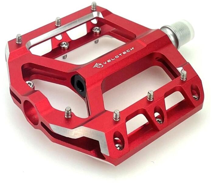 VELOTECH FreeStyle pedál alumínium CNC test Cro-mo CNC tengely ipari csapágyazás 14 darab cserélhető szegecs szín: piros méret: 100x103 mm súly: 305 g