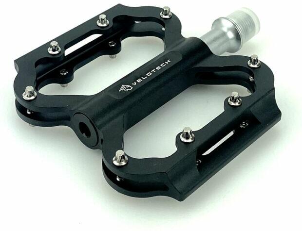 VELOTECH X-treme pedál alumínium CNC test Cro-mo CNC tengely ipari csapágyazás 12 darab cserélhető szegecs szín: fekete, nonfiguratív mintával méret: 100x100 mm súly: 305 g