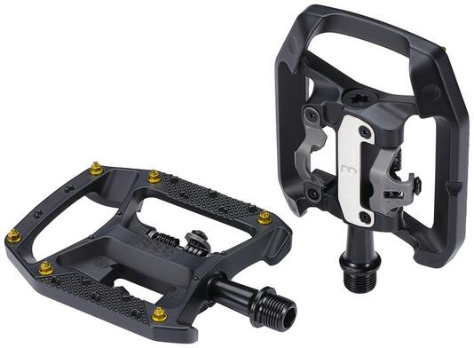 BPD-62 kerékpáros pedál kétfunkciós DualChoice Trail, 90 x 100 mm, matt fekete Teljesítményorientált DualChoice pedál. Kétfunkciós pedál, az egyik oldala SPD kompatibilis, a másik oldala platform pedál lapos talpú cipős használathoz. Platform oldala tüskés az extra tapadásért. Strapabíró matt fekete alumínium test CrMo tengellyel. K