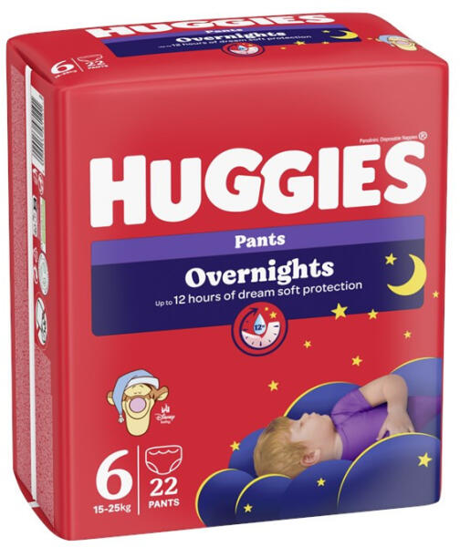 A Huggies Overnight 6 Pants éjszakai bugyipelenkák a puhaságot és gyengédséget ötvözik az éjszakai védelem praktikus tulajdonságaival, biztosítva a baba maximális kényelmét és szárazságát az egész éjszaka folyamán. Az új, modern csomagolás mögött továbbra is a jól ismert, megbízható prémium minőség rejlik, amelyet a szülők már évek óta nagyra értékelnek. El