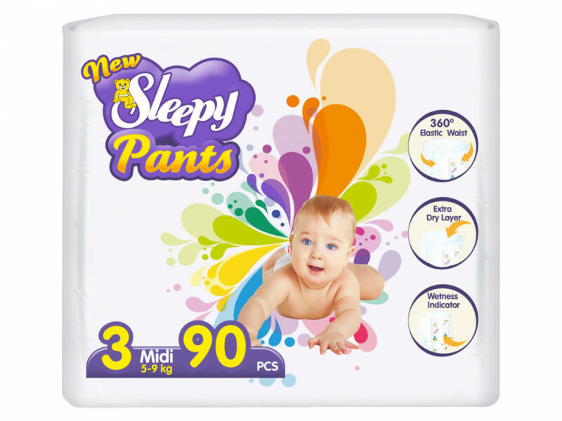 New Sleepy gumisderekú bugyipelenka vizeletjelző csíkkal Midi 3 (5-9)/90db A New Sleepy gumisderekú bugyipelenka Midi méretben szuper kényelmes viselet a körben gumis deréknak köszönhetően. Prémium minőségű eldobható bugyipelenka pamut puhaságú fedőréteggel, széles, rugalmas oldalrésszel - akár egy kisbugyi. Prémium, I. osztályú termék Megbízhatóan kimagasló nedvszív