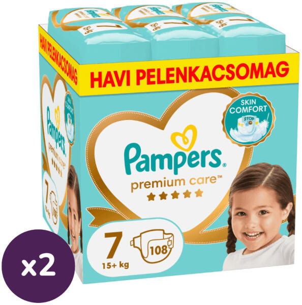 Pampers Premium Care pelenka 7, 15+ kg, HAVI PELENKACSOMAG 1+1 216 db Szeretet és más semmi: a gyengéd és gondoskodó Premium Care a Pampers legjobb védelmét nyújtja a baba bőrének az első perctől kezdve. Selymes puhaság és azonnali szárazság. A kifejezetten az újszülöttek bőréhez tervezett, körös-körül selymes puhaságú pelenka & 3 nedvszívó csatornája gyorsan mag