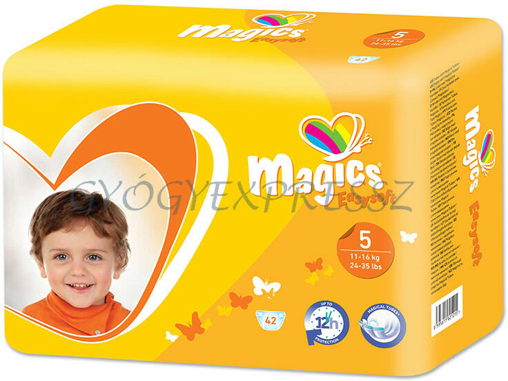 Eldobható pelenka, 11-16 kg-os gyermekek részére speciális Mágikus csatornákkal. Szuper száraz réteg a folyadék gyors elvezetésével a pelenka magjába, fokozott védelem a szivárgás ellen. Nedvszívóképesség: 1100 ml 42 db/csomag