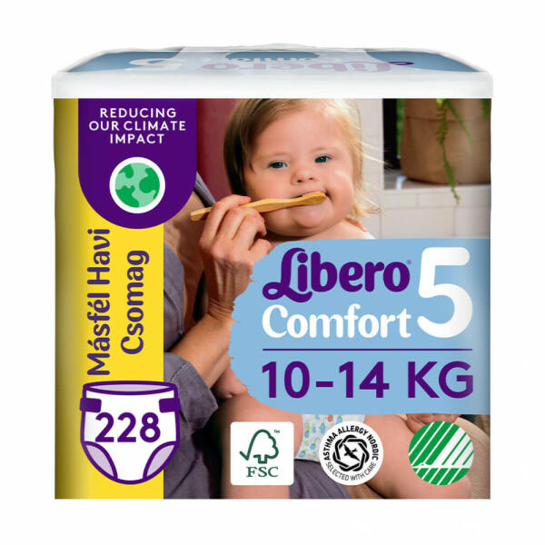 Libero Comfort 5 pelenka, 10-14 kg, MÁSFÉL HAVI PELENKACSOMAG 228 db A Comfort nadrágpelenka puha, teljes egészében légáteresztő, belső védőrétege hatékonyan felszívja a nedvességet. Rugalmas oldala, derékrésze és combgumírozása gyengéden körülfogja a baba pocakját és combját így minden mozdulatnál tökéletesen illeszkedik a test vonalához, éjjel-nappal kényelmes vi