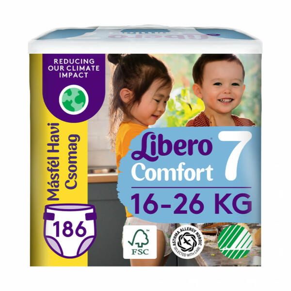 Libero Comfort 7 pelenka, 16-26 kg, MÁSFÉL HAVI PELENKACSOMAG 186 db A Comfort nadrágpelenka puha, teljes egészében légáteresztő, belső védőrétege hatékonyan felszívja a nedvességet. Rugalmas oldala, derékrésze és combgumírozása gyengéden körülfogja a baba pocakját és combját így minden mozdulatnál tökéletesen illeszkedik a test vonalához, éjjel-nappal kényelmes vi