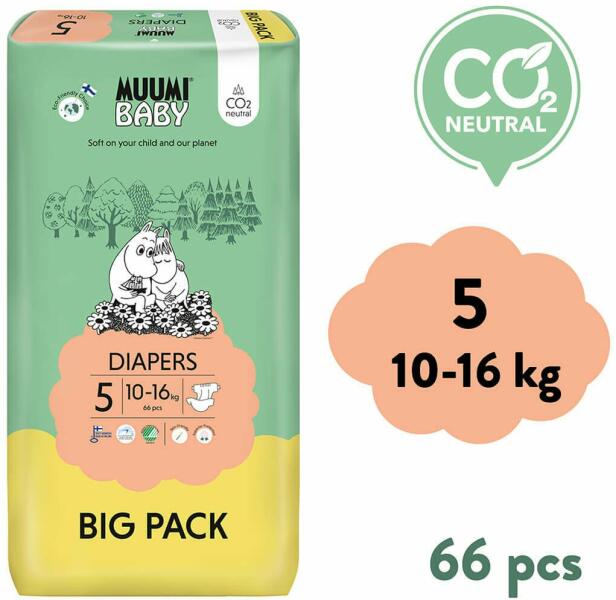 Gyengéd és bőrbarát Muumi Baby egyszer használatos öko pelenkák képesek kielégíteni a legigényesebb szükségleteket is – rendkívül rugalmassá, szívóképességűvé és a hátsó és oldalsó gumírozásnak köszönhetően tökéletesen illeszkednek még fokozott mozgás esetén is, így 100%-os védelmet nyújtanak a kifolyás ellen. A légáteresztő anyag tiszta és puha növ