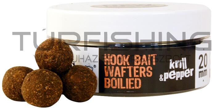 A The Big One Hook Bait Wafters főzött csalizó bojli termékek a kikönnyített csalik minden előnyét felvonultatják. Lassan süllyedő változat, ami azt jelenti, hogy a fenéken kínáljuk fel, de szinte csak érinti az aljzatot, ezért a táplálkozó pontyok az elsők között szippantják fel. A bojli család összes tagjára jellemző, hogy szinte bármilyen körülmények között ere