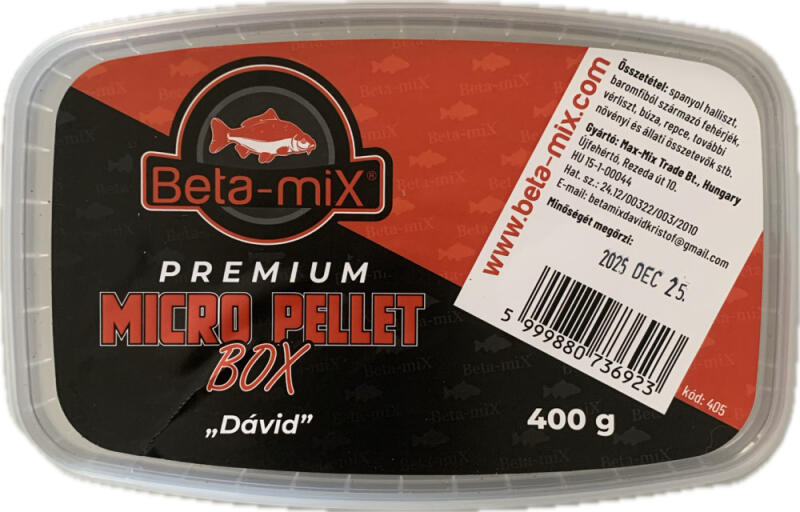 Betamix Mikropellet Prémium Pellet Box Dávid 2mm 400gr Növényi-és állati összetevőkből Halliszttel készül Fehérjék és olajos magvak felhasználásával Webshopunk széles választékában, nemcsak kiváló minőségű ruházati terméket találsz, de horgászfelszereléseket, Kiegészítő kellékeket , is. Mert a horgászat élménye nem csak a fogott halakban, hanem a megfelelő fe