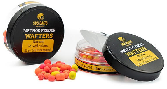 SBS Method Feeder Ace Lobworm Mixed Colors 6-8mm Wafters 20gr 20 grammos dobozban 6 és 8 mm-es méretű dumbell formájú wafterek találhatók Citromsárga, narancssárga, piros és pink színekben kaphatók, melyek különféle horgászati helyzetekben is eredményesek lehetnek A wafterek jól tartanak a csalitüskén, de hajszálelőkére fűzve is felkínálhatók A method kosárba töltött