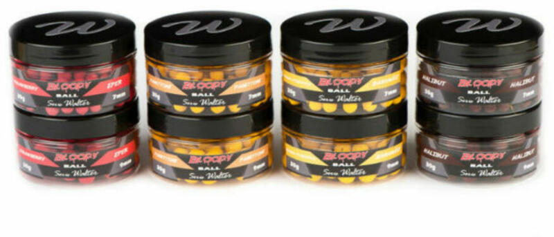 Serie Walter Bloody Ball lebegő horogcsali víz alatt látványosan "vérző" pop-up golyók, amik speciálisan kezelt felületüknek köszönhetően hosszú ideig húzzák maguk után a csíkot és terítik aromájukat. Strawberry-Eper, Panettone, Banana/Pineapple-Bananász és Halibut ízben, 7mm-es és 9mm-es méretben kaphatókKiszerelés30gr / tégely