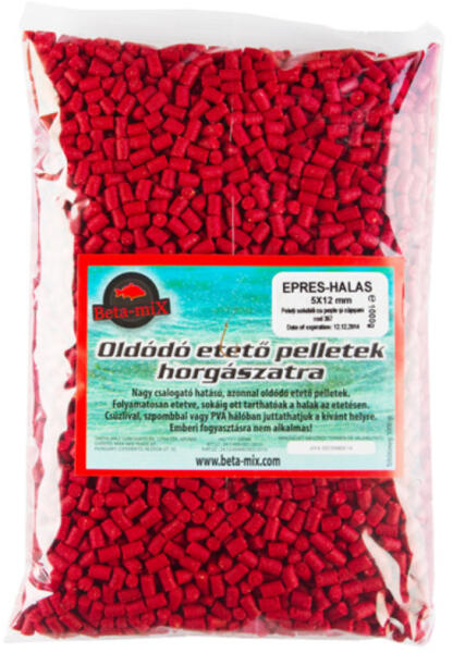 4mm etető pelletEzek a pelletek leginkább a ponty horgászatához lettek kifejlesztve. Beltartalmuk nagyon magas és változatos, rengeteg változtatás után nyerte el végső formáját. Nagyon kevés a vízigényük, 1 kg pellethez csupán 2-2,5 dl víz szükséges, amit fokozatosan kell hozzáadni, amíg el nem éri tökéletes állagát, és horgászat közben érdemes utána nedvesíteni.