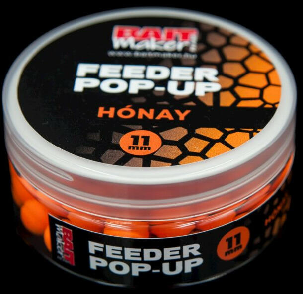 Kifejezetten a feeder és method horgászat szerelmeseinek hoztuk létre Feeder Pop Up csali termékcsaládunkat melyek 9 és 11 mm-es méretben elérhetőek, a Premium Oldódó Pop Up, valamint Wafters csalik ízeihez igazodva. Élénk színekkel és közepes felhajtóerővel rendelkező lebegő bojli. Remek kiegészítője lehet a pellet termékcsaládnak, vagy a tejsavas erjesztésű Feeder Cuc