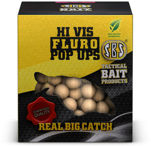 Az SBS Fluro Pop Ups egy rendkívül élénk színű lebegő csali! A ponty köztudottan kíváncsi természetű hal és nagyon sokszor nem képes legyőzni kíváncsiságát. Ha Fluro Pop Uppal csalizunk, akkor csalink élénk fluoreszkálásával ki fog tűnni a többi csali közül, felkeltve ezzel a pontyok érdeklődését. Erre a megfigyelésre alapozva használják nagyon sokan eredményese