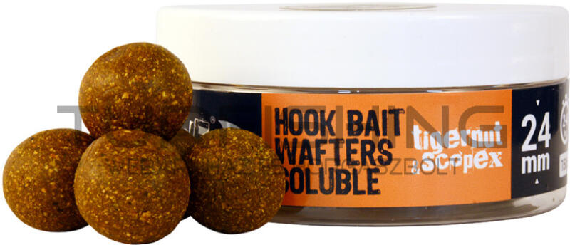 The One Hook Bait Wafters Soluble A The One Hook Bait Wafters Soluble termékek a kikönnyített csalik minden előnyét felvonultatják. Lassan süllyedő változat, ami azt jelenti, hogy a fenéken kínáljuk fel, de szinte csak érinti az aljzatot, ezért a táplálkozó pontyok az elsők között szippantják fel. A The One Hook Bait Wafters Soluble Gold folyékony alkotóelemei alapját a 100