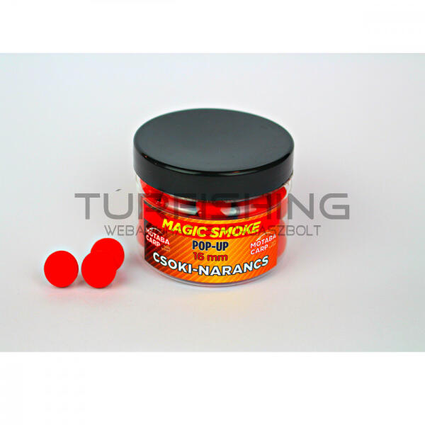 Motaba Carp Magic Smoke Pop-up - 16mm A Motaba Magic Smoke Pop-up egy lebegő és egyben oldódó csali, melynek felhajtóereje úgy lett beállítva, hogy egy 6-os méretű horgot teljes előkehosszban megtudjon emelni. Erőteljes, de kellemes aromázottság jellemzi az egész szériát, rendkívül feltűnő színek kíséretében. A csalik oldódási ideje elnyújtott, így rendkívül jól tar