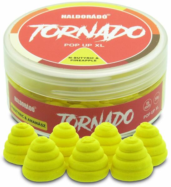 A Tornado Pop Up XL egy különleges formájú, rendkívül attraktív, főzött, lebegő csali, amely napokig képes a vízben megőrizni formáját és lebegőképességét, miközben folyamatosan áramoltatja ki magából vonzó ízét és aromáját, de nem füstöl"!Tökéletesen használható önmagában is, megemelt előkés csali felkínáláshoz, de más csalik balanszírozásához, lebeg