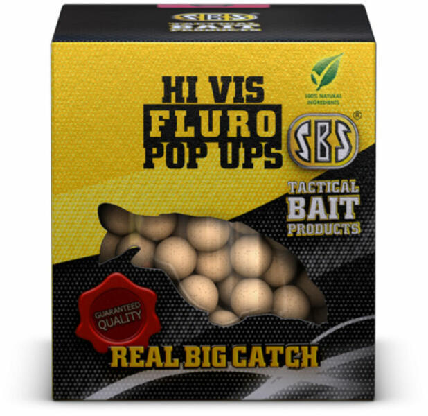 Az SBS Fluro Pop Ups egy rendkívül élénk színű lebegő csali! A ponty köztudottan kíváncsi természetű hal és nagyon sokszor nem képes legyőzni kíváncsiságát. Ha Fluro Pop Uppal csalizunk, akkor csalink élénk fluoreszkálásával ki fog tűnni a többi csali közül, felkeltve ezzel a pontyok érdeklődését. Erre a megfigyelésre alapozva használják nagyon sokan eredményese