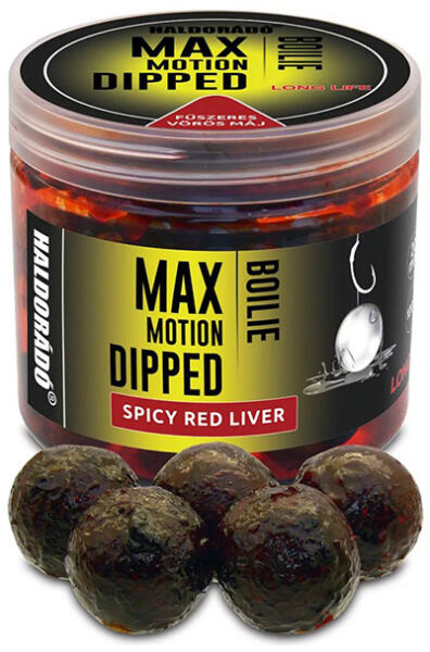 A MAX MOTION Boilie Dipped 20 mm egy igazán ízes és attraktív csalizó bojli. Olyan folyékony anyagban (ízes, aromás) dipben ázik, aminek köszönhetően a vízbe került csali azonnal kapásra ingerelheti a környéken portyázó pontyokat, ugyanis gyorsan elkezd dolgozni. Annak ellenére, hogy dipben ázik, mégsem esik szét. Kellően kemény és stabil marad a hajszálelőkén! Lassan,