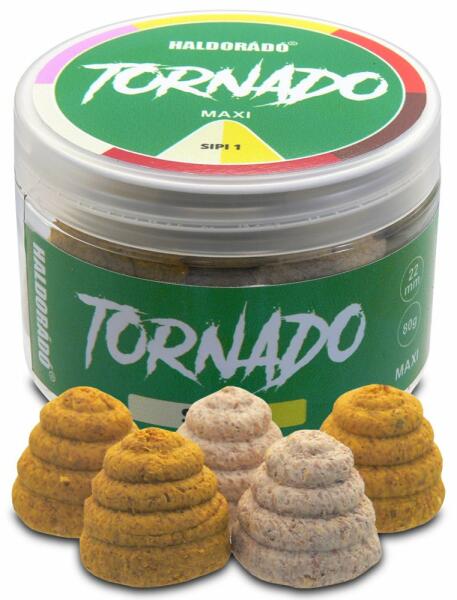A TORNADO MAXI megőrizte a TORNADO csalik különleges formáját, de az elődökkel ellentétben ez egy süllyedő, oldódó csali. Megnövelt, 22 mm-es mérete miatt, a szelektív nagyponty-horgászok számára lett optimalizálva, de a kapitális halakra pályázó feederezőknek is megoldást jelenthet, ha ki kell válogatni a nagyját. Oldódás közben folyamatosan adagolja magából az íz